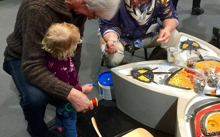 De betonnen bloemen krijgen al aardig kleur en zien er nu al ongelooflijk mooi uit! Veel bezoekers hebben ‘een steentje bijgedragen’ bij het versieren van de bloemen, waarmee de toon gezet is voor de volgende dagen!