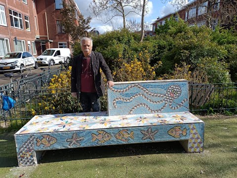 Mozaïekbank met wereldse ambitie in Nij Beets